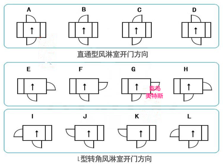 2.比較人性化,可以根據客戶現場定制風淋室開門方向,轉角風淋室內部空間不變,占地面積小,可以節(jié)約實用面積。。