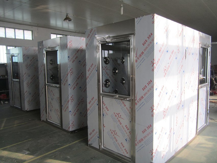 8.轉角風淋室具有外形美觀,壽命長,易清潔.符合無塵室原理等設計。